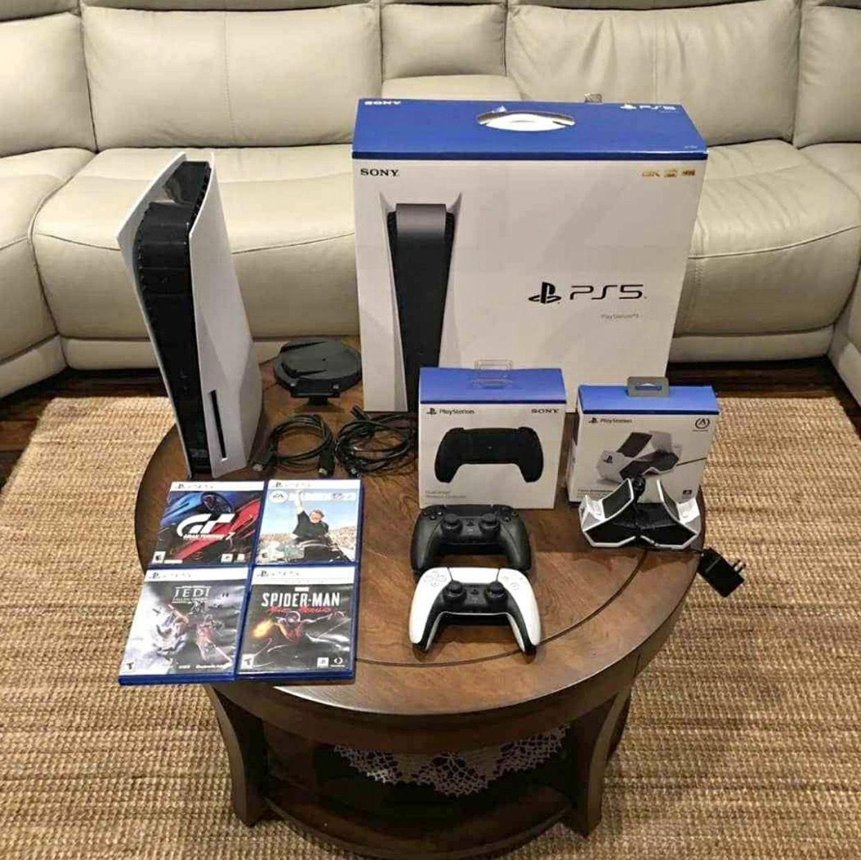 For sale: A gently used PS 5 that's ready for its next adventure! This console is in great condition and has been well taken care of. It's packed with tons of features and games that will keep you entertained for hours. If you're looking for a great deal on a high-quality console, this is the one for you