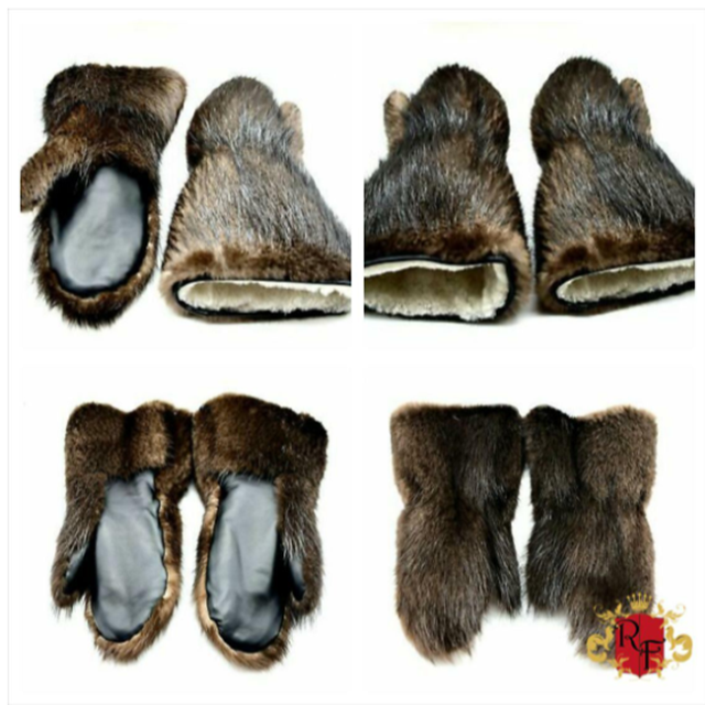 Long men's beaver fur gauntlets, warm mi...
