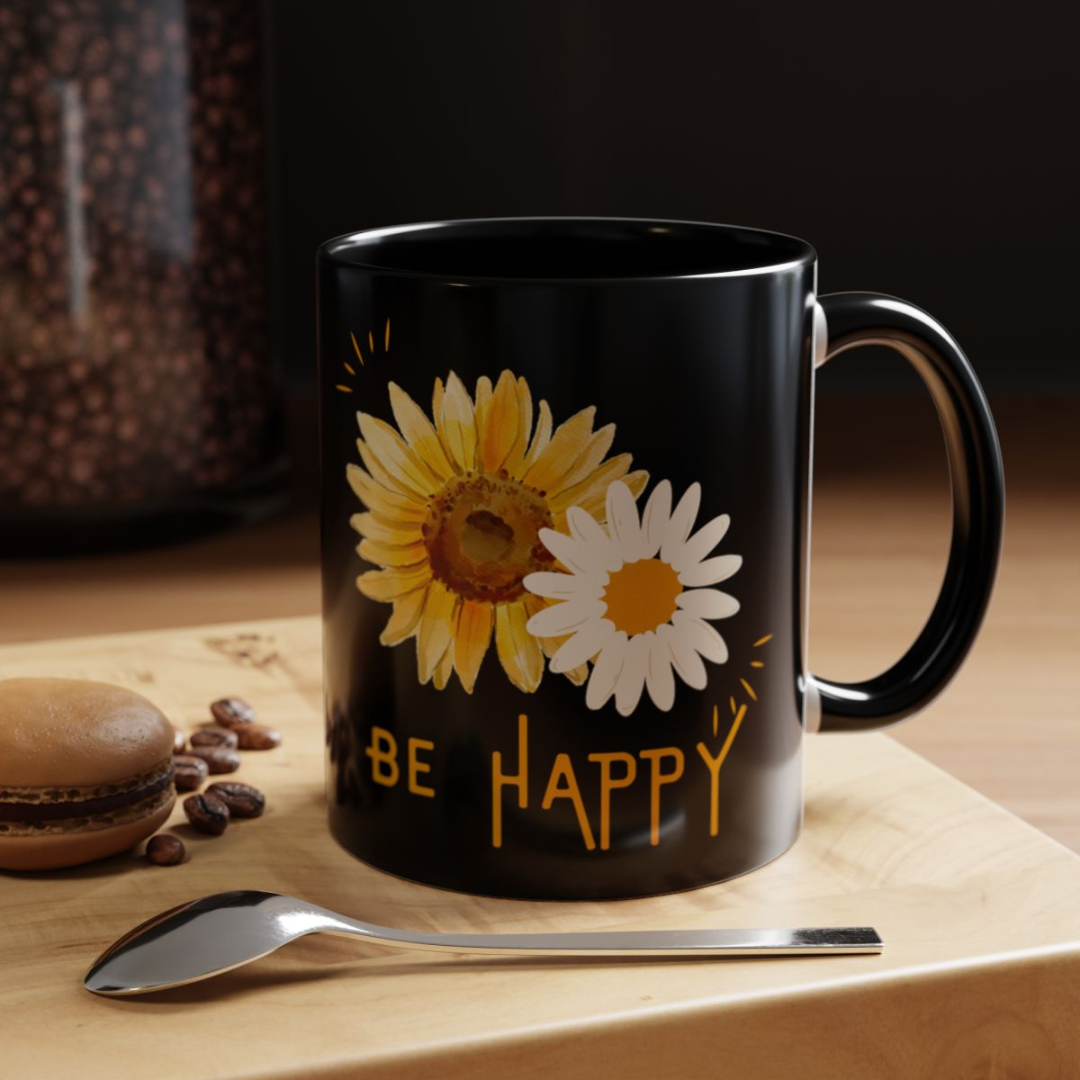 Be happy Coffee Mug, Beauitiful flowers...