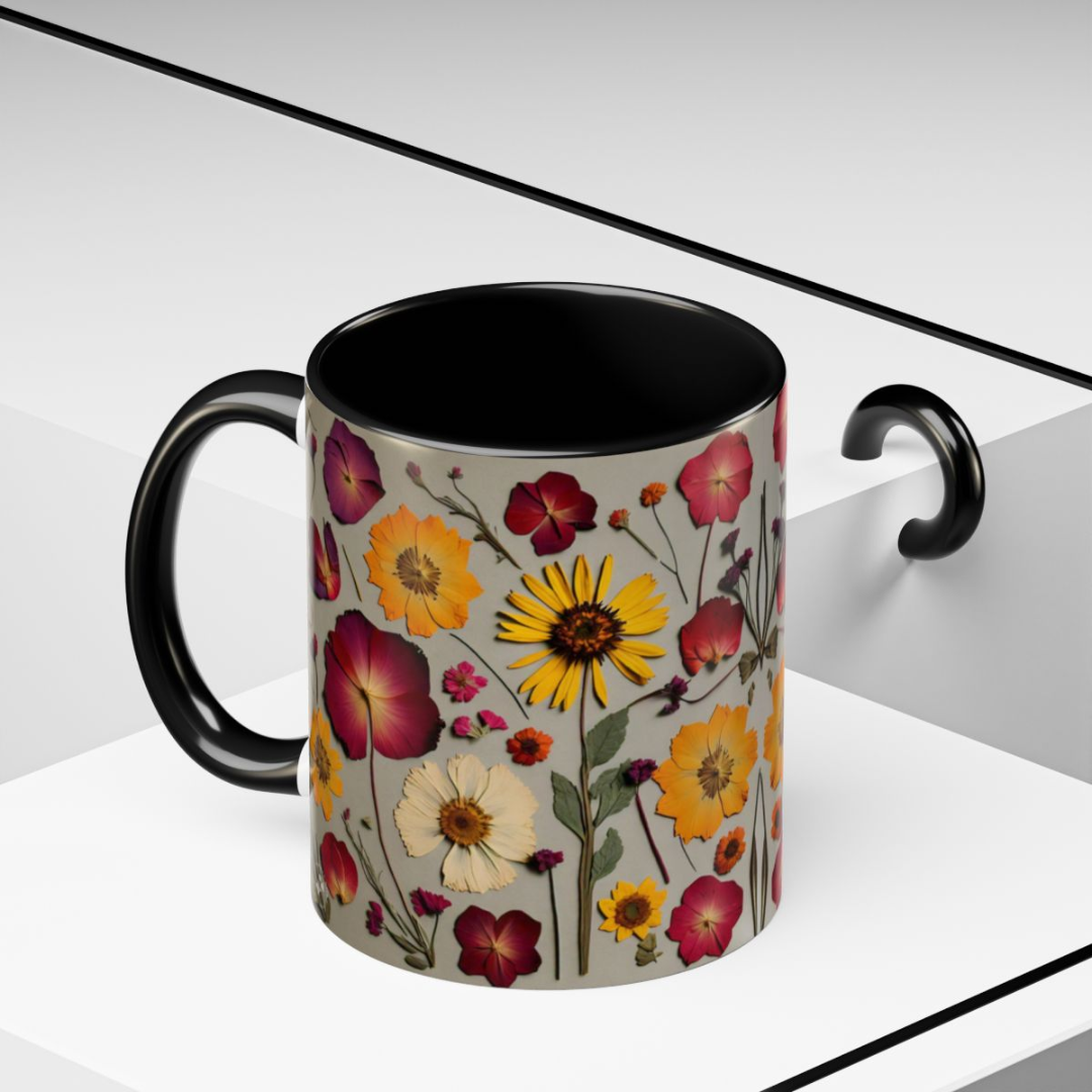 Pressed Flowers Mug, Boho Wildflowers Co...