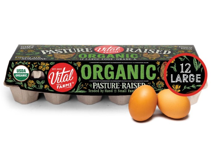 Vital Farms Organic Pasture-Raised Large Brown Eggs come in eco-friendly, recyclable packaging that protects freshness.