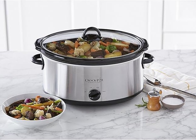 Crock-Pot 7 Quart Oval Manual Slow Cooker, Stainless Steel (SCV700-S-BR), Versatile Cookware for Large Families or Entertaining