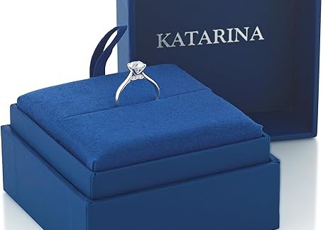 KATARINA GIA Certified 0.5 to 4 Carat Oval Cut Diamond Solitaire Engagement Ring in 14K Gold (F-Color, VVS1-Clarity)
