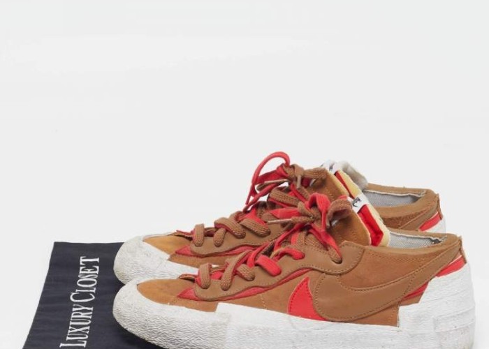 Look what I found on The Luxury Closet! https://theluxurycloset.com/men/nike-x-sacai-blazer-size-44-brownred-leather-and-suede-lace-up-sneakers-p1301277