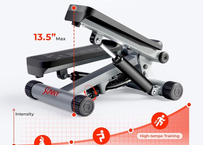 Sunny Health & Fitness Mini Stepper for Exercise at Home, Stair Step Workout Machine with Resistance Band and Over 300lb Weight Capacity, Optional Twist Motion and Free SunnyFit App Connection