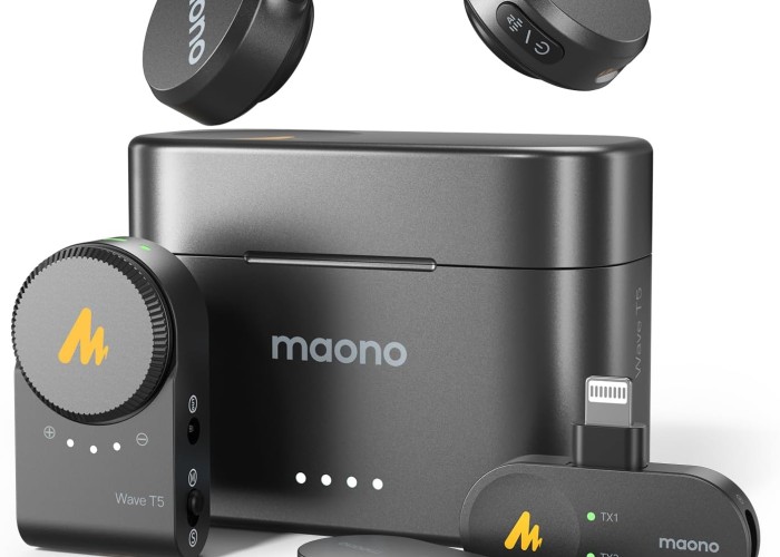 MAONO Wireless Lavalier Microphone for iPhone/Android/Camera/PC, Mini Lapel Mic with 48khz 24bit, Voice Filter, Noise Cancellation, 30h Battery, USB-C/Lightning Plug for Video Recording - Wave T5