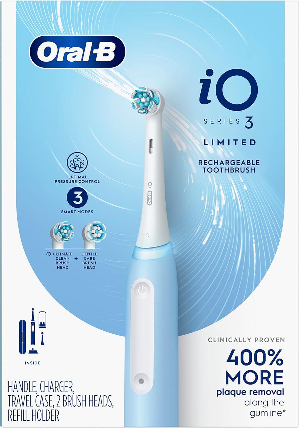Oral-B iO Deep Clean Rechargeable Electric Powered Toothbrush, Icy Blue with iO Series 3 Limited